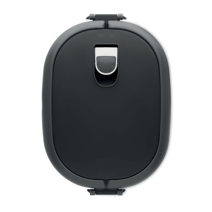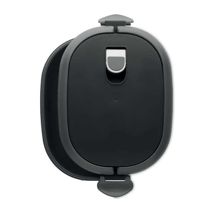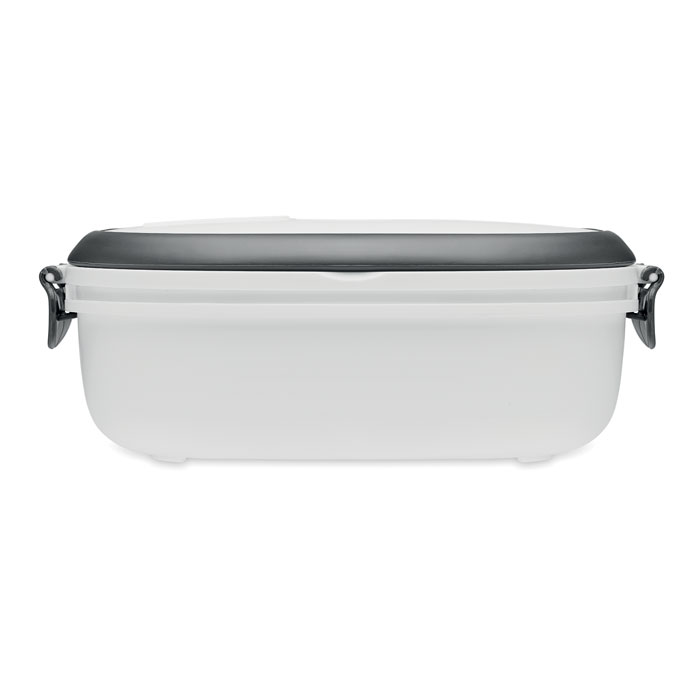 Lunch box with air tight lid made of PP both out side and inside. Microwave and dishwasher safe. Capacity 750 ml.