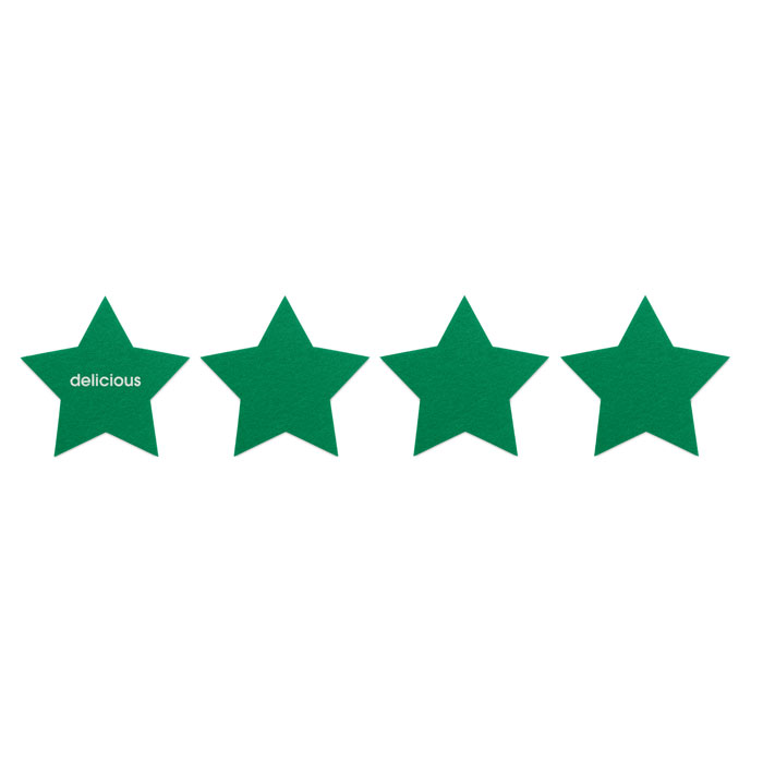 Set of 4 RPET felt coasters in star shape presented in kraft box.