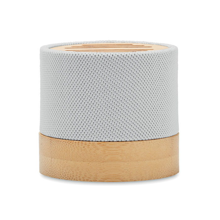 5.0 wireless speaker in RPET casing with bamboo detail on top. 1 Rechargeable Li-ION 300 mAh battery included. Includes an SD card port and an AUX/ USB cable. Output data: 3W, 3 Ohm and 5V. Playing time approx. 3h. Bamboo is a natural product, there may be slight variations in colour and size per item, which can affect the final decoration outcome.