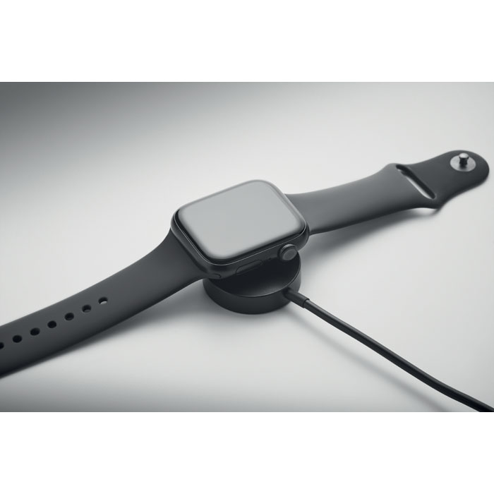 Key ring 4 in 1 data transfer and charging cable 60W with bamboo detail. Input: 2-in-1 Type-C & Type-A. Output: Watch charging (Samsung® and Apple®) , type-C and micro-B (2 in 1 pin).