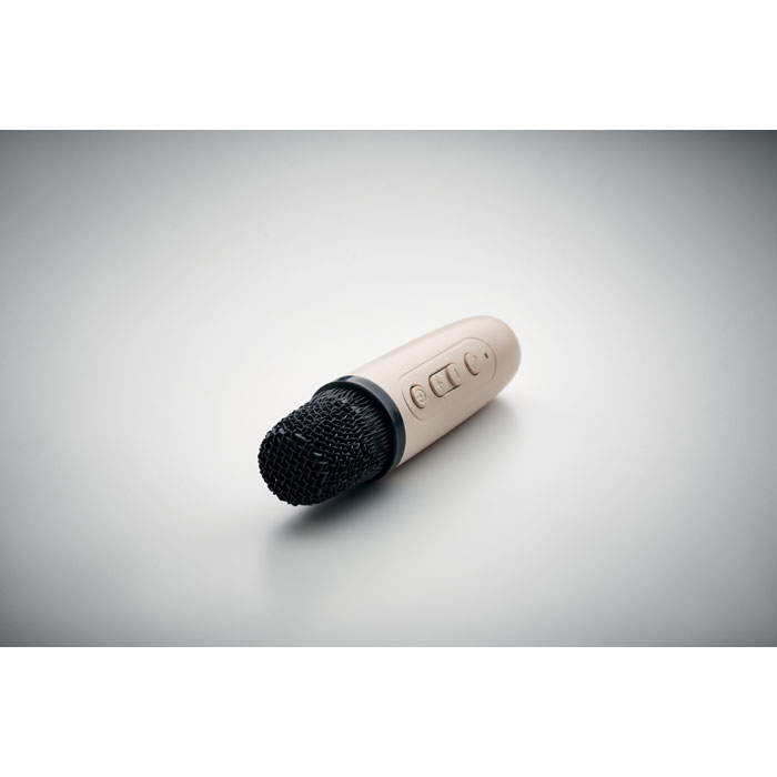 Karaoke set including 5W wireless speaker with LED changing colours light in recycled ABS with PU handle and microphone. Built-In 800 mAh battery speaker and 400 mAh battery microphone. Playing time approx. 3h.