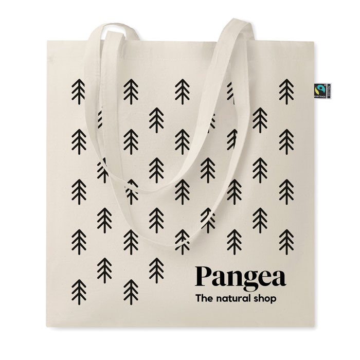 Fairtrade cotton shopping bag with long handles. 140 gr/m². This product is OEKO-TEX® STANDARD 100 certified.