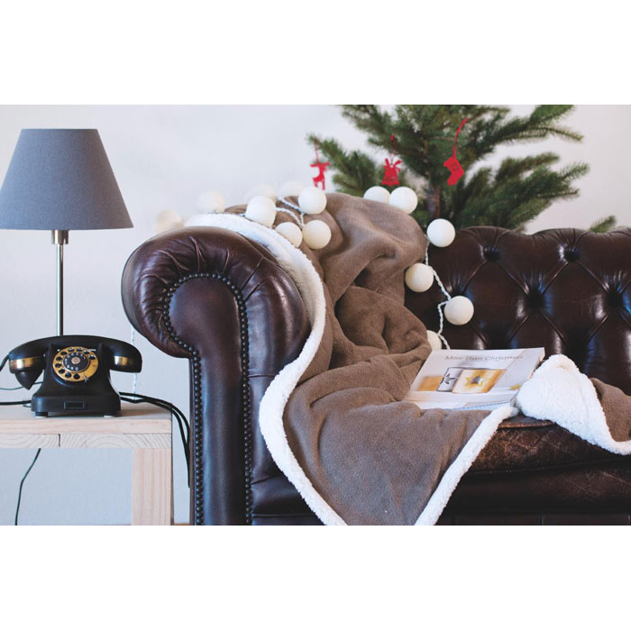 200 gr/m² coral fleece blanket with reversible 220 gr/m² polyester sherpa lining. Wrapped in ribbon and printable card.